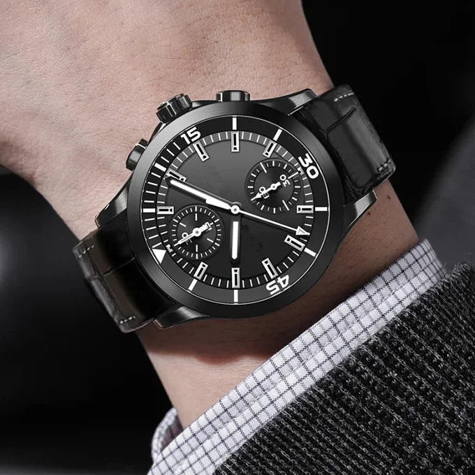 Eager to elevate your style? Look no further than this men’s watch. The aviator-inspired wristwatch design enhances your stylish look. Crafted with a durable stainless steel case and comfortable genuine leather strap. it offers both style and durability. Fashionistas love this perfect wristwatch for its automatic self-wind movement feature. Don’t wait. grab yours now!